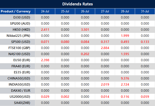 Please note that the dividends of the following products will be adjusted accordingly. Index dividends will be executed separately through a balance statement directly to your trading account, and the comment will be in the following format “Div & Product Name & Net Volume ”.