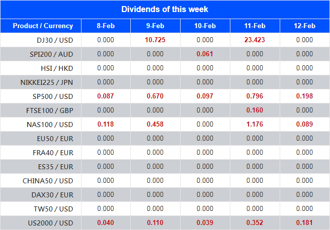 Warmly reminds you that the component stocks in the stock index spot generate dividends. When dividends are distributed, VT Markets will make dividends and deductions for the clients who hold the trading products after the close of the day before the ex-dividend date.