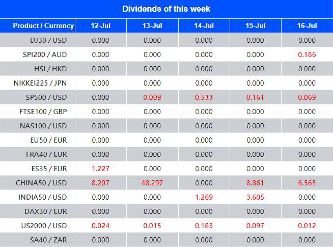 Warmly reminds you that the component stocks in the stock index spot generate dividends. When dividends are distributed, VT Markets will make dividends and deductions for the clients who hold the trading products after the close of the day before the ex-dividend date.