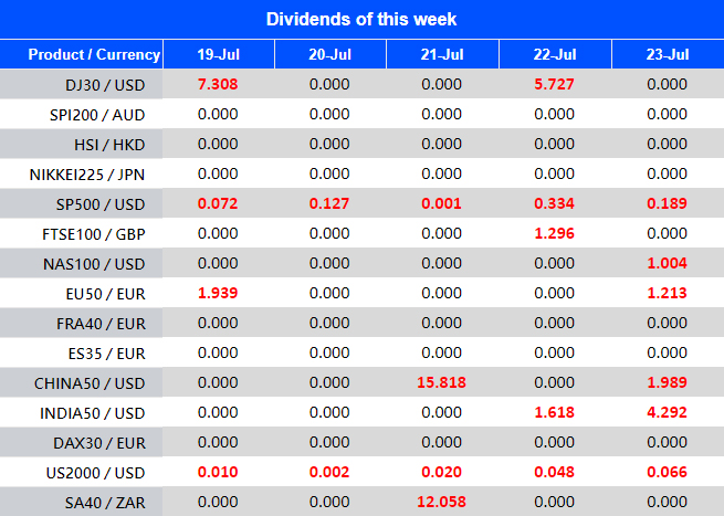 Warmly reminds you that the component stocks in the stock index spot generate dividends. When dividends are distributed, VT Markets will make dividends and deductions for the clients who hold the trading products after the close of the day before the ex-dividend date.