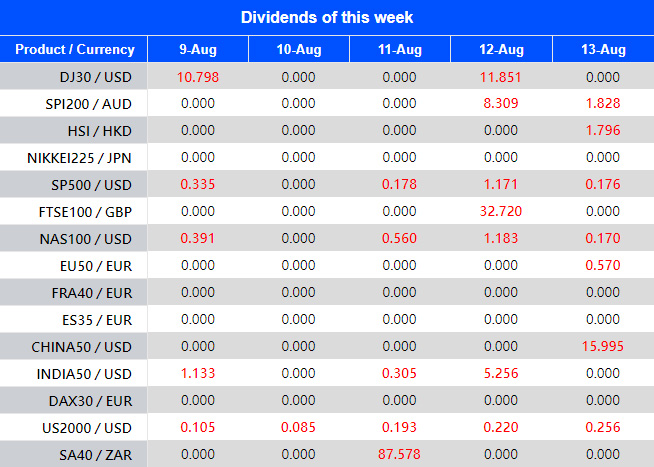 Warmly reminds you that the component stocks in the stock index spot generate dividends. When dividends are distributed, VT Markets will make dividends and deductions for the clients who hold the trading products after the close of the day before the ex-dividend date.