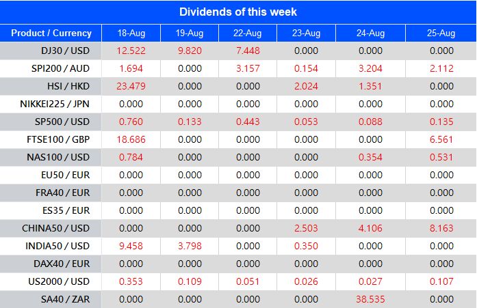 Warmly reminds you that the component stocks in the stock index spot generate dividends. When dividends are distributed, VT Markets will make dividends and deductions for the clients who hold the trading products after the close of the day before the ex-dividend date.