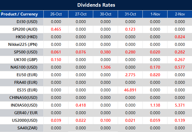 Please note that the dividends of the following products will be adjusted accordingly. Index dividends will be executed separately through a balance statement directly to your trading account, and the comment will be in the following format “Div & Product Name & Net Volume ”.