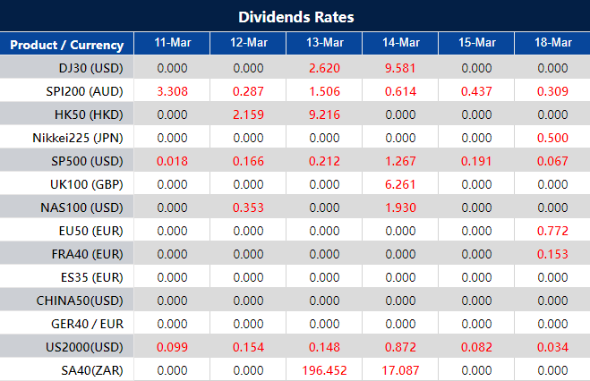 Please note that the dividends of the following products will be adjusted accordingly. Index dividends will be executed separately through a balance statement directly to your trading account, and the comment will be in the following format “Div & Product Name & Net Volume ”.