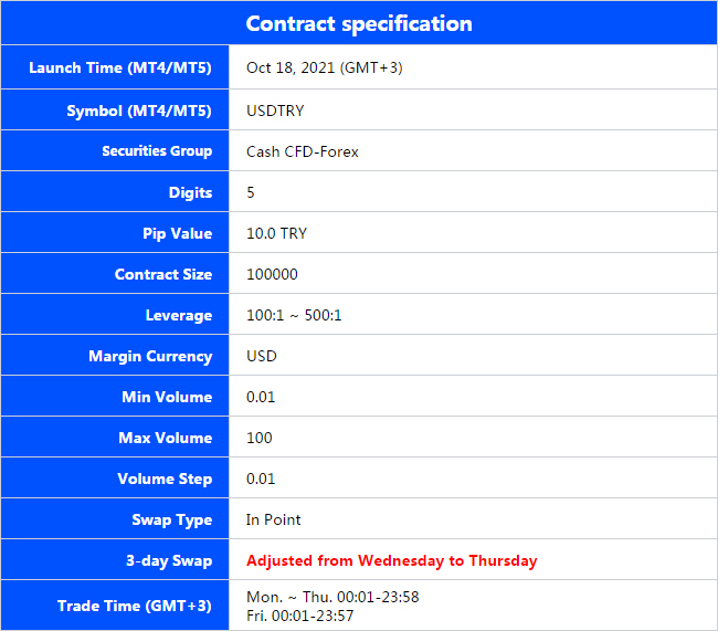 The date of USDTRY’s 3-days Swap will be changed from every Wednesday to every Thursday.