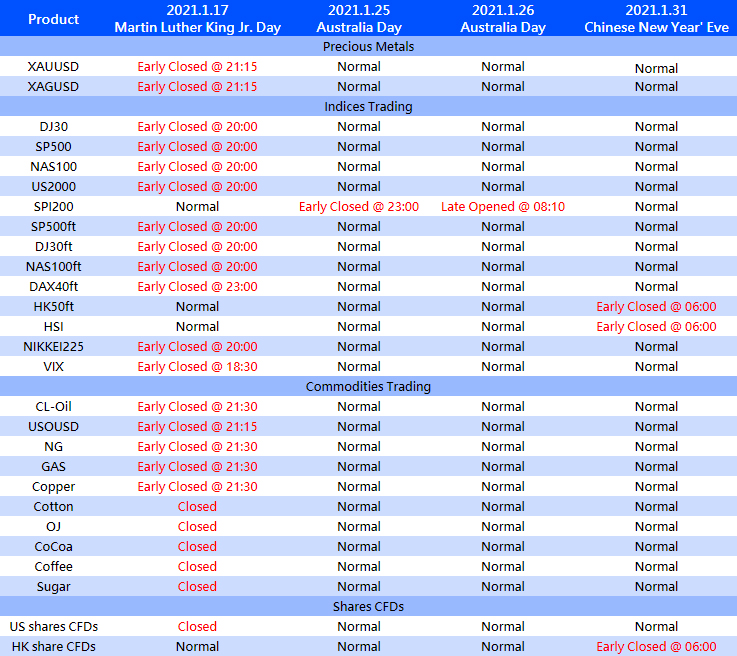 The above time is MT4/5 server time. The trading time of other products is not affected. The above data may be subject to change. Please refer to the actual time on MT4/5.