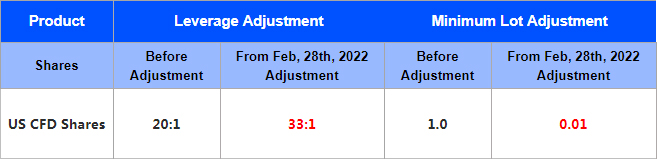 1. The leverage of US Shares will be changed to 33:1 fixed leverage.