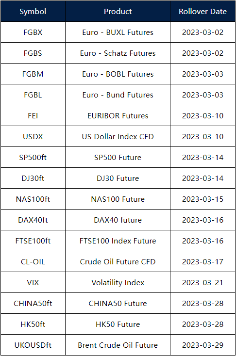 • Please ensure that all take-profit and stop-loss settings are adjusted before the rollover occurs.